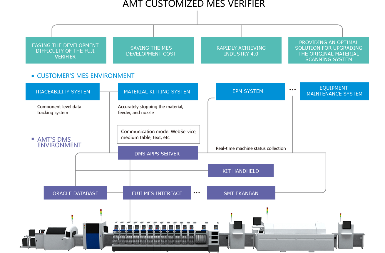 FUJI's machine is very advanced, developers need to have rich experience in API development with FUJI ma-chine. To accelerate the implemengtation progress of the customer's Industry 4.0 objective, AMT launch-es the customized MES verifier.